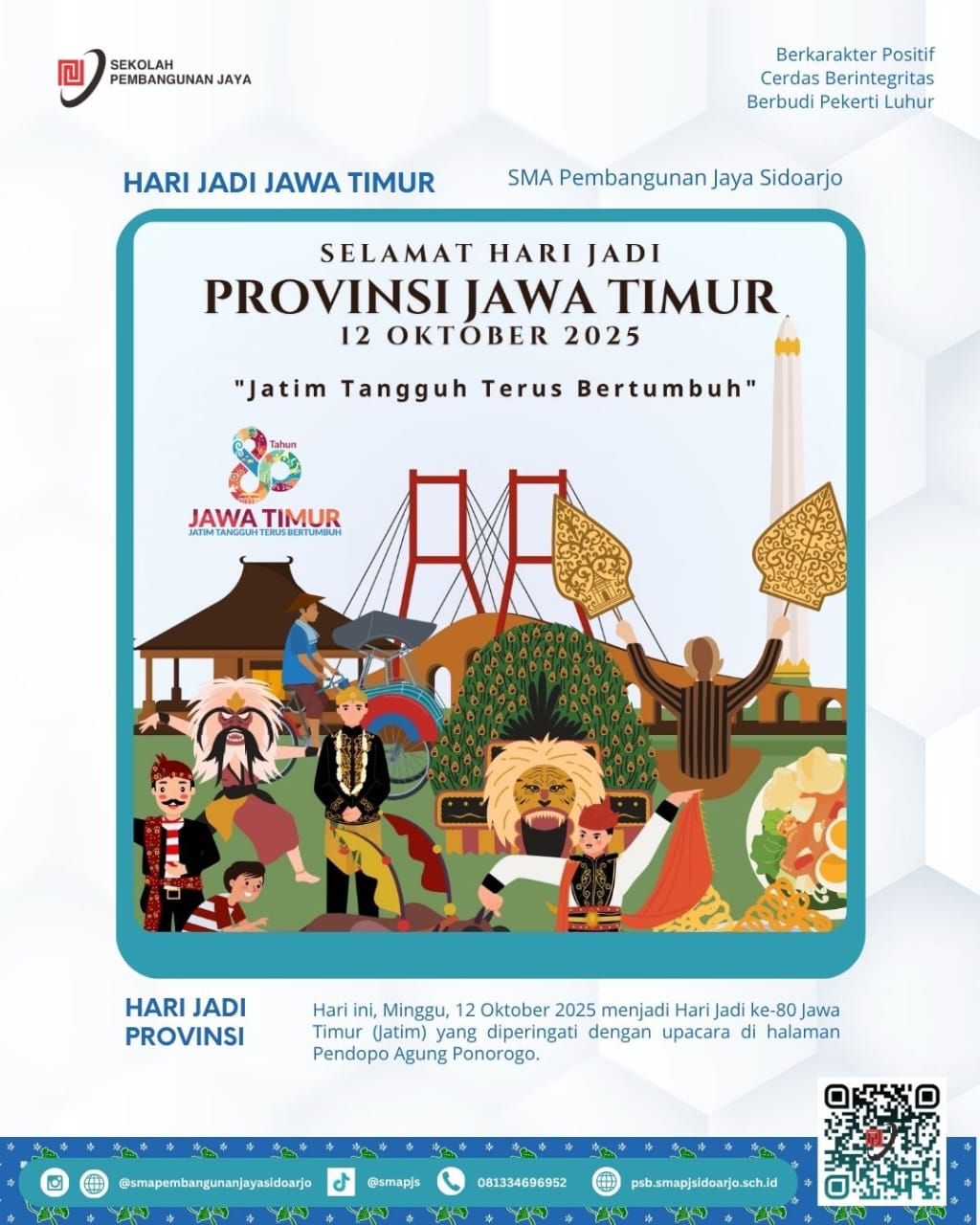 Semangat ini juga yang kami bawa di SMA Pembangunan Jaya Sidoarjo, tempat generasi muda Jatim tumbuh dengan karakter, integritas, dan prestasi! ?